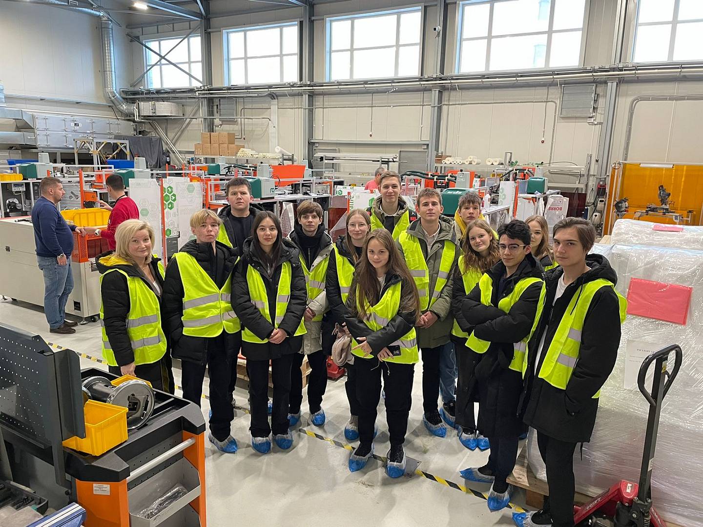 24 ноября 2023 года, группа обучающихся 10 «А» класса посетила Компанию КЛАСС-ИНЖИНИРИНГ в рамках федерального проекта «Билет в будущее» . В ходе экскурсии ребята познакомились с процессом разработки оборудования для перемотки и разрезки различных рулонных материалов, для печати логотипа на адгезивных материалах, а также для производства картонной шпули.